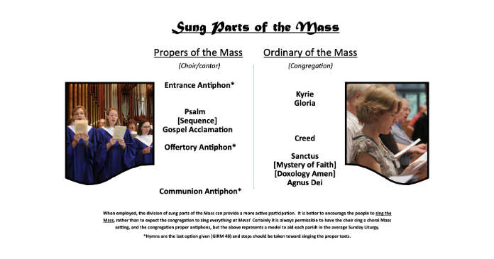 Many parishes want to begin with this, but the Church has been clear that these should not be sung without the first and second degrees, namely the Clergy Acclamations and the Congregation’s participation in the Ordinary. The third degree:
